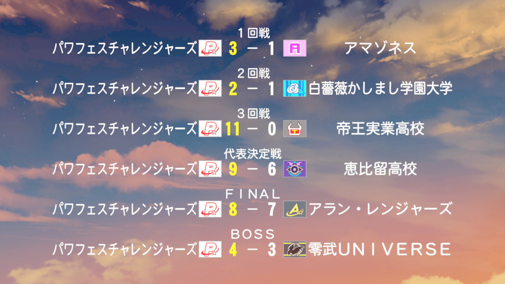 とにかくアランレンジャーズから点が獲れないわ、3回戦・4回戦でもたまに負けるわで大変でした。主な改善点としては、単純に打つのが下手だったので練習モードも使って少しは当てられるようにする、キャプボの1~2フレくらい遅延してる画面からパススルーの画面を見る、マネージャーを凪から変える、以上の3つで勝率を上げられました。