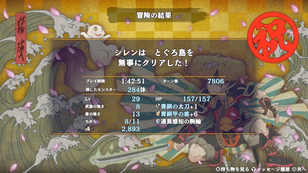 とりあえず最初のとぐろ島をクリアしてエンディングを見たところまで。