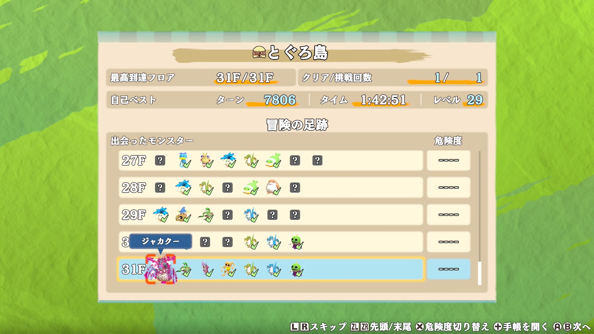 とりあえず最初のとぐろ島をクリアしてエンディングを見たところまで。