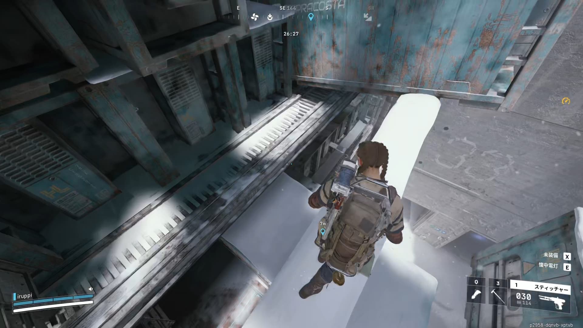 埋もれた街でガレリアの建物屋上へは南側から屋根上に登り、標識のほうへはジャンプして行ける。標識の上に行くにはジップラインが必要。ジップラインを設置して、登った先に設置する。