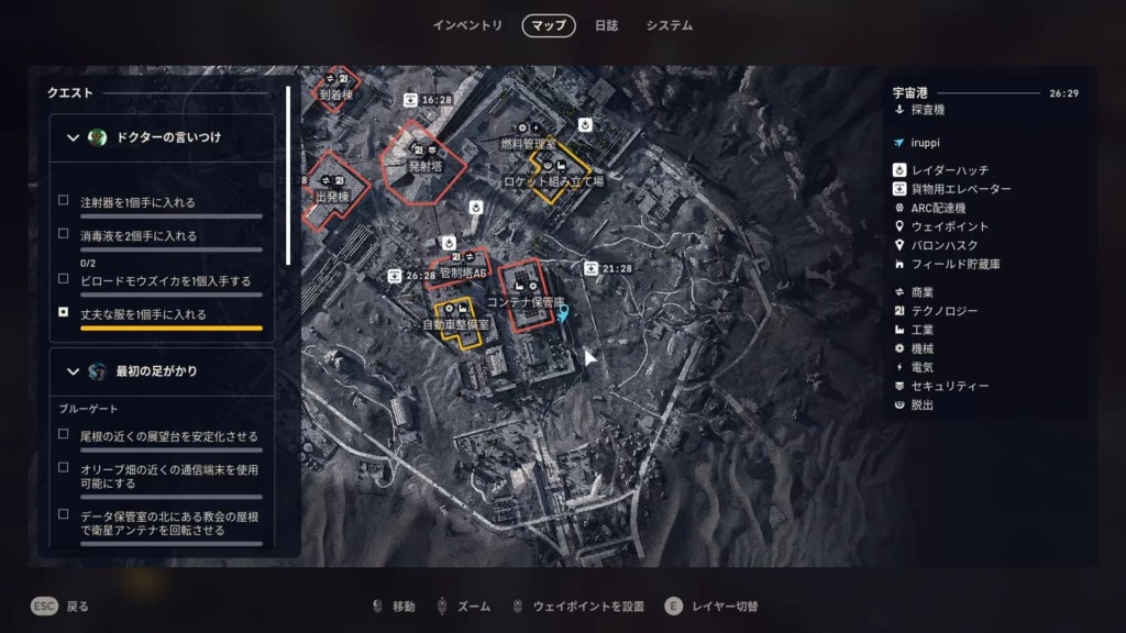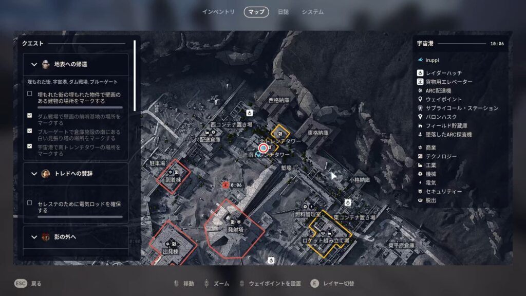 宇宙港の南トレンチタワーに行く。南トレンチタワーの南西の壁にスプレーをかけると達成。