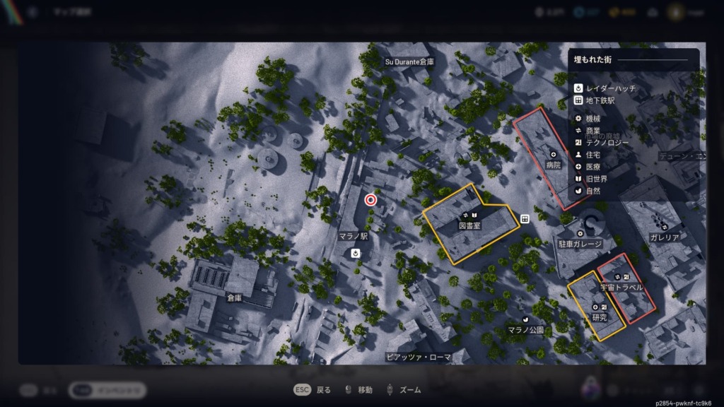 - 埋もれた街の埋もれた物件で壁画のある建物の場所をマークする