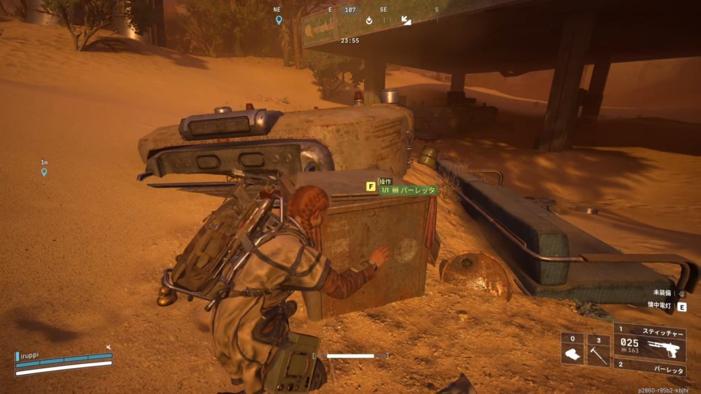 クエスト受注時にもらえるバーレッタが必要。なくした場合はティアン・ウェンから購入できる。 武器隠し場所はガソリンスタンドの少し西。