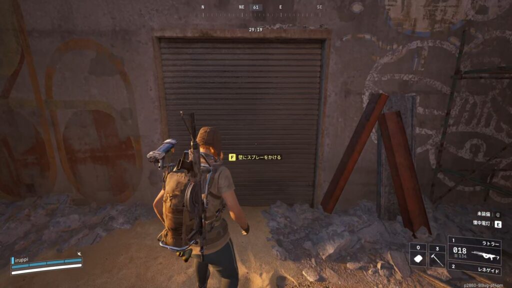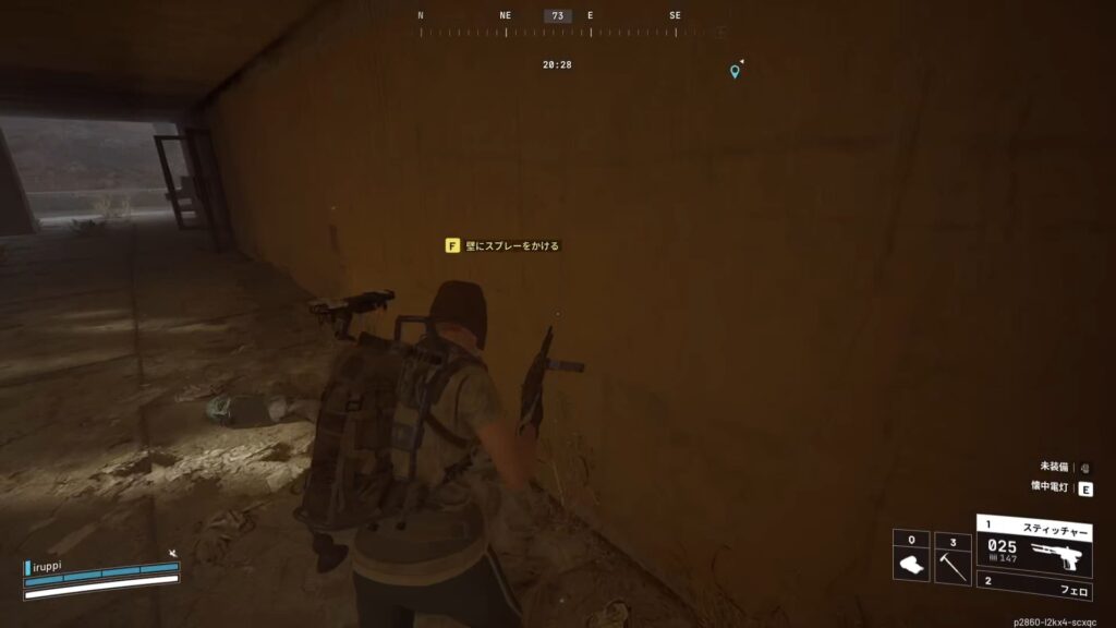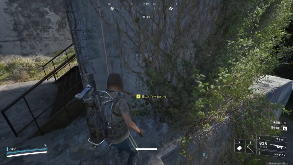 ダム戦場では北のパターンハウスへ向かう。パターンハウスの建物の西側の壁にスプレーをかけると達成。