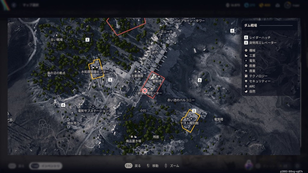 ダム戦場の研究管理センターにある診察室のコンテナは、研究管理センターの最上階の南西の部屋。診察室の入口は防犯センサーがあり、隣の部屋のロッカールームのロッカーも判定がある。