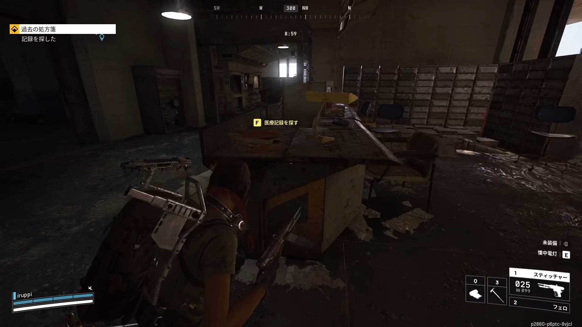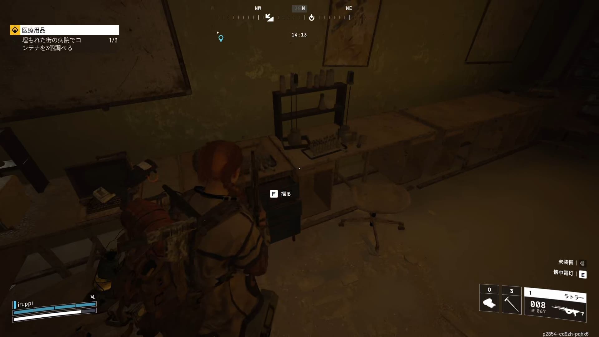 埋もれた街の病院は3階の部屋で漁れるところを漁っていく。南東側の部屋を漁って達成。
