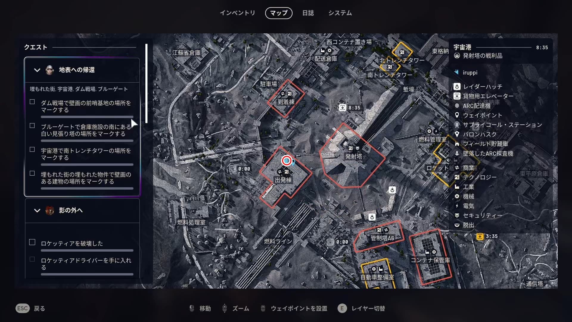 いずれも激戦区なので装備を整えていくか、無料ロードアウトで行くといいかも。 宇宙港の出発棟のコンテナは宇宙港2階の北東側通路にあるコンテナ。