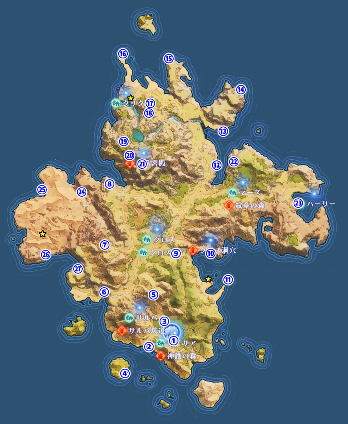 | ジェミニ | アーリア南西のレイドエネミーがいる孤島 |