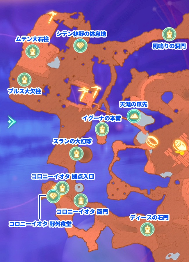 | 3 | コロニーイオタ 西の崖際 | ・ノポンコイン・銀×5 ・4250G ・3SP |