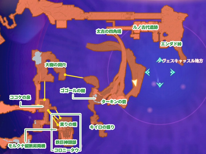 | 1 | ロンアの展望から少し東(北から回り道して行ける場所) | ・高純度のジェムストーン ・おこげシュガー ・2320G |