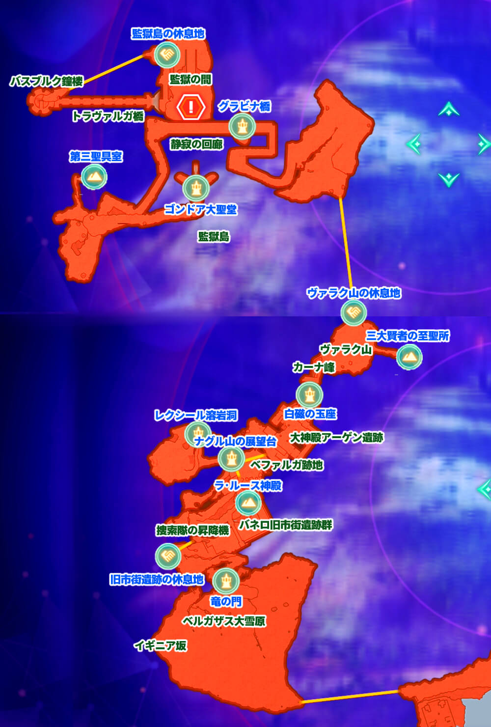 | 8 | 監獄島の休息地から南 | ・謎の欠片 ・超高純度のジェムストーン ・ジェム解放キット ・戦略指南書・第二十巻 ・アナライザー ・親愛の指輪 ・8210G |
